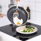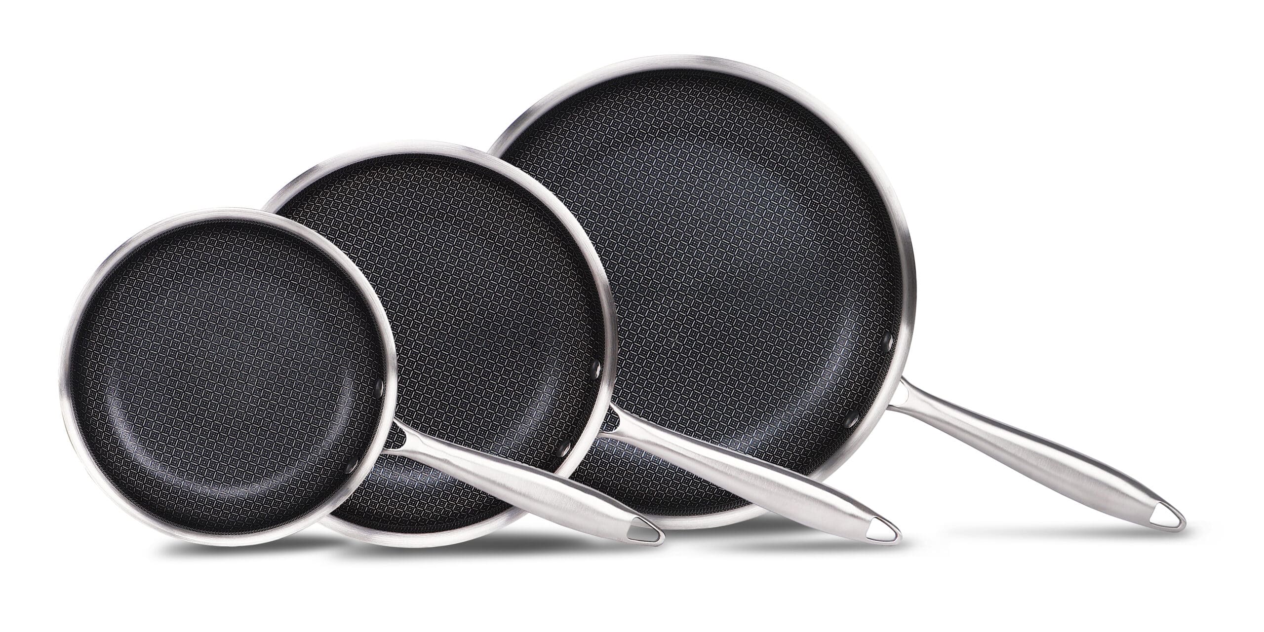 Elevate your cooking experience with this premium 3-piece frying pan set from Cermalon. Each pan features innovative tri-ply construction, combining two layers of stainless steel with an aluminium core for superior heat distribution and durability. The advanced diamond hex non-stick coating ensures effortless food release and makes cleanup a breeze. The pans boast durable riveted diecast handles for secure handling and comfortable grip during cooking. Compatible with all hob types including induction, these versatile pans feature a whole induction base for consistent heating. The unique tri-ply technology guarantees fast, even heat distribution, making them perfect for everything from delicate eggs to stir-fried vegetables. The scratch-resistant surface maintains its appearance and performance through regular use, while the professional-grade construction ensures these pans will be a lasting addition to your kitchen arsenal. Whether you’re a home cook or culinary enthusiast, this comprehensive set provides the essential sizes needed for various cooking tasks.